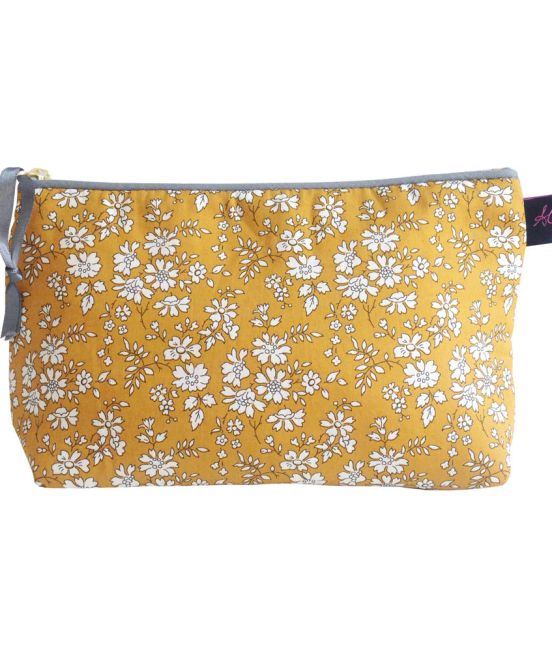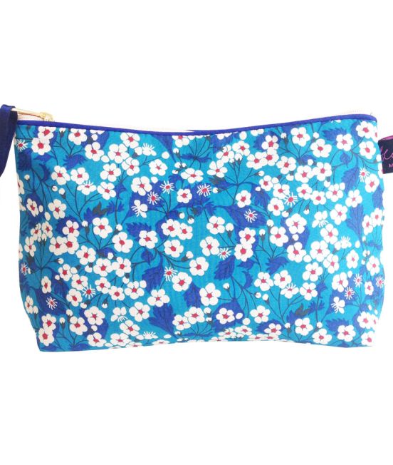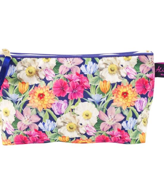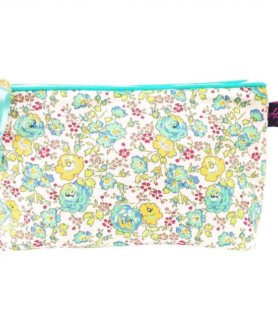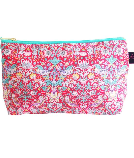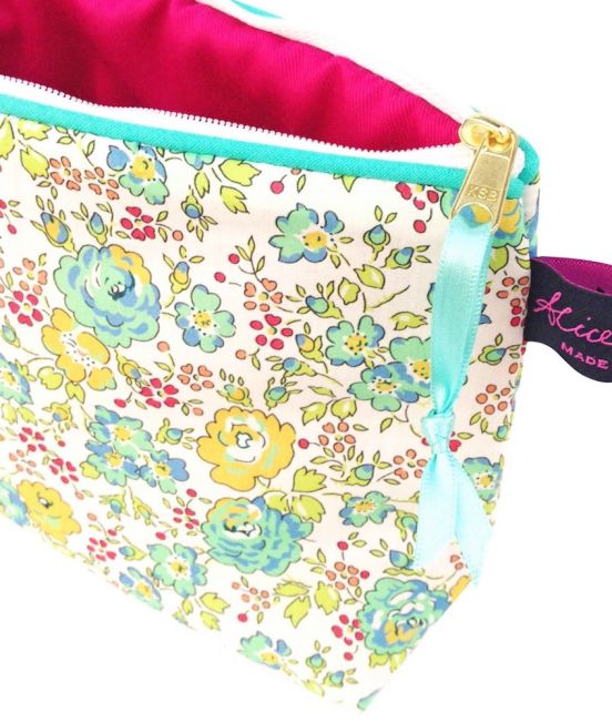 Uncoated fabric with a padded layer, it feels beautiful to the touch. Lined with a fabulous hot pink fabric and finished with a satin ribbon zip pull. Available form Abrahsm Store in a variety of Liberty fabrics.