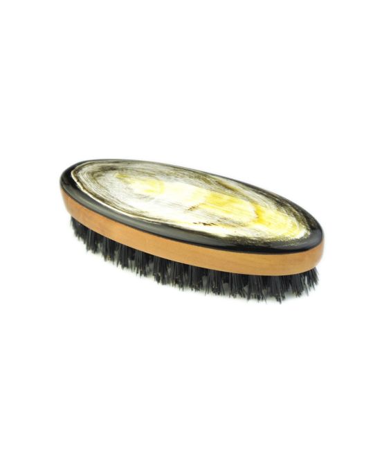 A small horn topped brush made from oiled pear wood and wild boar bristles, great for keeping your facial hair looking cared for.