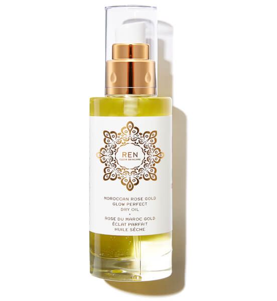 REN Moroccan Rose Gold Glow Perfect Dry Oil: As great for your hair as it is for your skin, this exquisite dry oil is powered by clean bioactives, working to nourish and deeply moisturise while it protects. Skin is left glowing, with a healthy sheen.