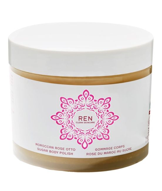REN Moroccan Rose Otto Sugar Body Polish is a revitalising body scrub which uses cane sugar to gently remove dead skin cells, leaving skin silky smooth, even-toned and lightly scented with the 10,000 rose petals used to make rose oil.