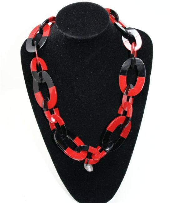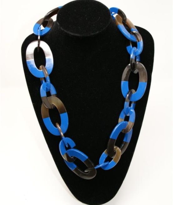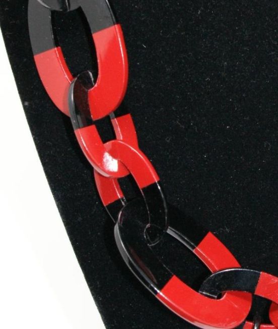 Large oval link necklace, with varous lacquer finishes on half of each link.