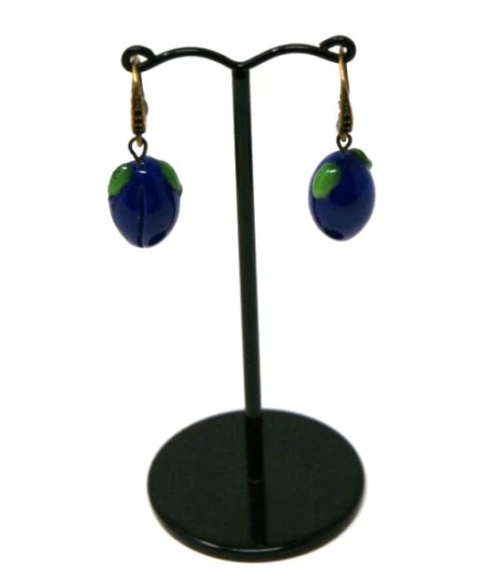 Blueberry earrings with green leaves by Diana Wilson ArcanaDWS0BBYERG