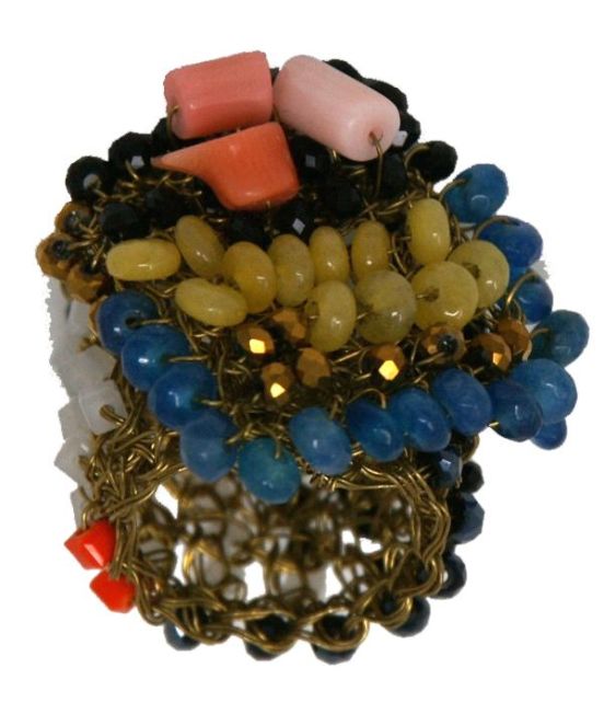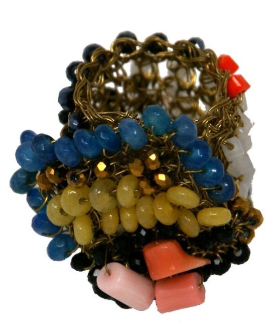 In a fashion and design landscape where many trends appear the same and concepts blend into one another, Palizzi aims to make a unique mark. The remarkable choice of colours. shapes and arrangements is unmistakably inspired by Mediterranean landscapes and the ancient cultures that made this part of Italy so uniquely artistic. The use of a crochet technique with recycled copper brass or silver wire creates complex interlaced structures into which semi-precious stones crystals. pearls: natural vintage and recycled minerals are fixed in an intricate process.”