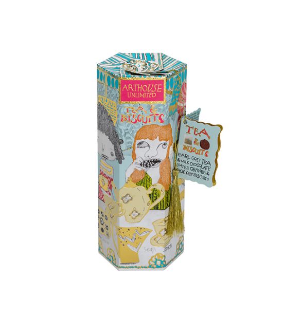 This stunning box decorated with the artist’s original work includes the perfectly balanced combination of robust and restorative Earl Grey tea with rich and indulgent milk chocolate coated orange and chocolate chip biscuits. A unique and remarkable taste experience to share and enjoy with friends and family.
