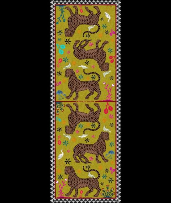 Ortigia Cashmere scarves feature the serval or gattopardo and are a cashmere/wool blend made in Italy.