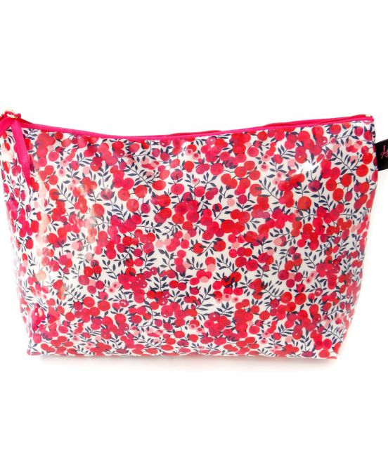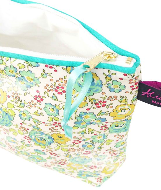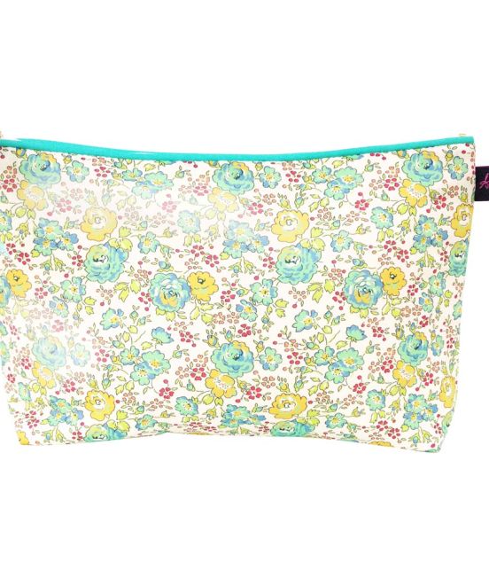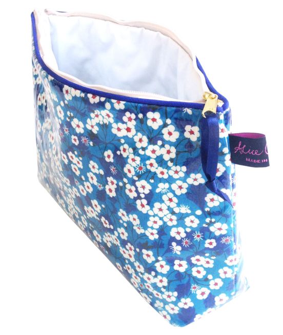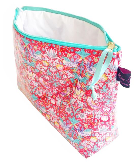 Big enough to fit all your essential products in one beautiful bag. Strong and spacious, the bag is also lined in a waterproof fabric and comes with a lovely satin ribbon zip pull.