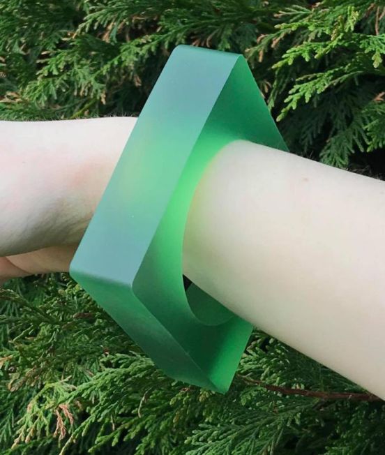 Designed by Rosalba Galati & Laura Sant, these unique gel bangles are made from moulded silicone. Geometric shapes are met with soft curves rather than hard angles making it hard to resist touching them!